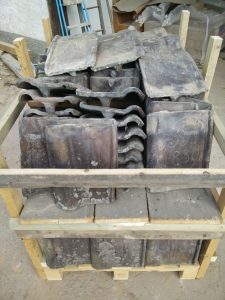 Als wir die alten Ziegel von dem Mansarddach abgedeckt haben, sahen wir, dass keiner wie der andere war. Alle Dachpfannen sehen ein wenig unterschiedlich aus. Sie schimmern seidenmatt, sind teils umbrafarben, teils gehen sie ins Rotbräunliche oder Gräuliche über. Auf einem dieser in Großalmerode gefertigten Ziegel entdeckten wir eine Jahreszahl – 1839. Von Hand in den Ton geschrieben.