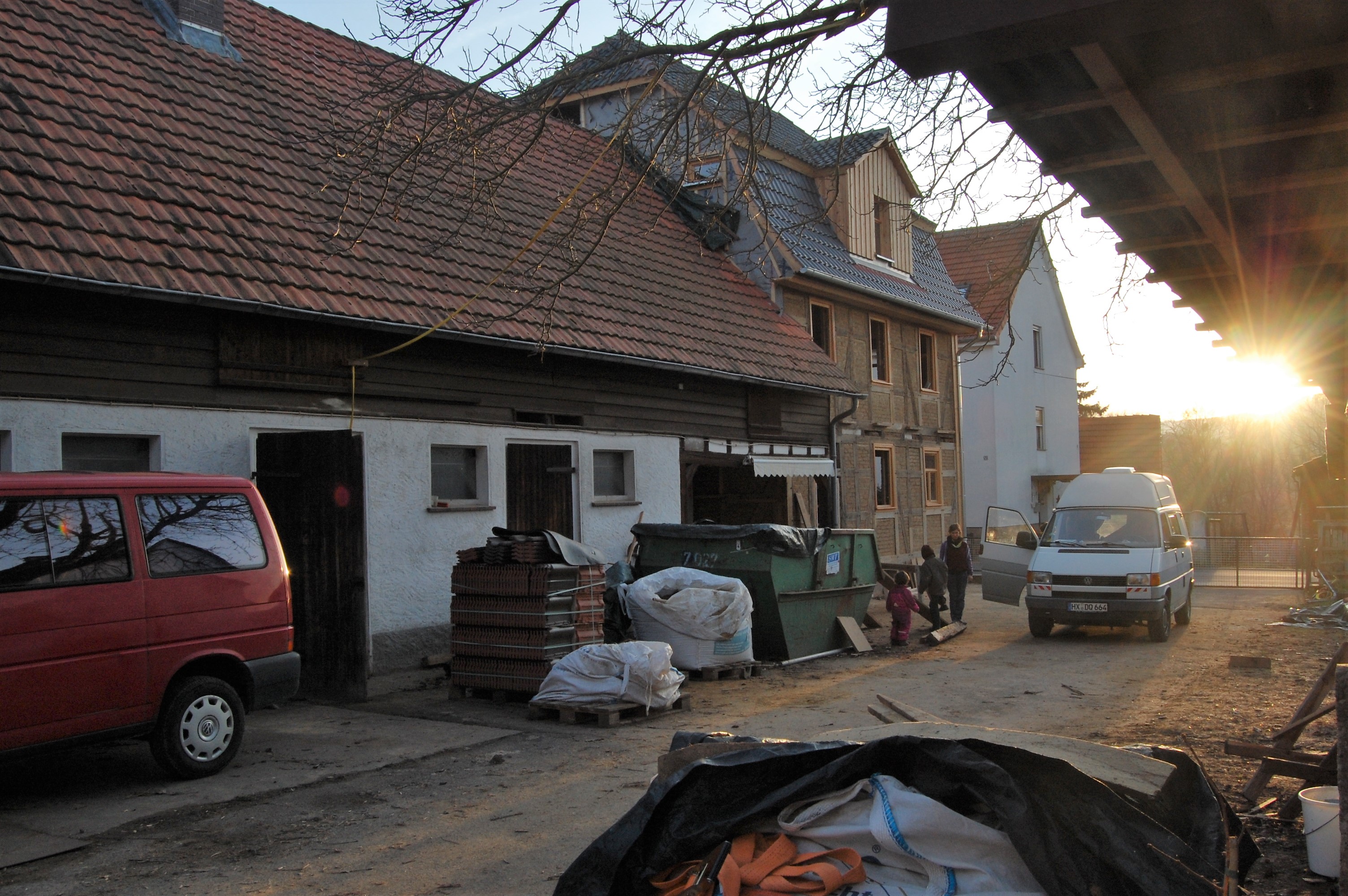 Zwar wirtschaften wir nach einem soliden Finanzplan, was uns zuversichtlich stimmt. Aber durch die umfangreiche Fachwerksanierung und die unerwarteten Schwierigkeiten beim Stallausbau steigen die Kosten, so dass wir wohl noch einen neuen Bankkredit aufnehmen müssen. Um jedoch die Summe möglichst gering zu halten, suchen wir weiterhin solidarische Menschen, die uns mit einem Direktkredit unterstützen. Nähere Infos dazu findet Ihr hier.