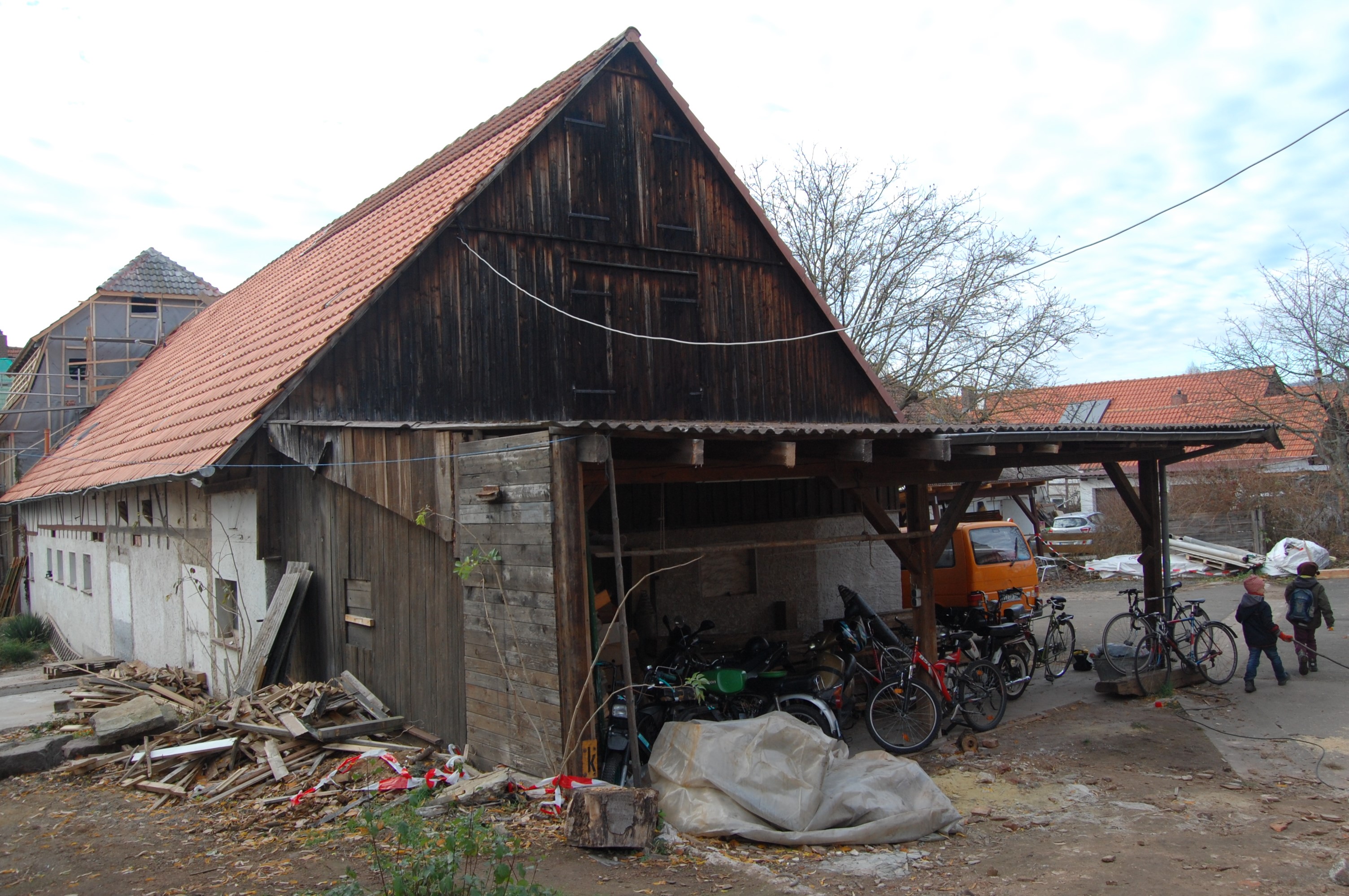 Mittlerweile haben wir mit dem zweiten Bauabschnitt auf dem Hof begonnen, dem Ausbau des ehemaligen Stalls. Im Erdgeschoss sollen dort unsere Gemeinschaftsräume und Büros hinkommen, im Obergeschoss Wohnräume. Es ist eigentlich ein solider Bau aus den 50er Jahren. Dachten wir zumindest. Doch der Schein trügt. Wäre der Stall ein einfacher Küchenschrank, er würde wohl auf den Sperrmüll landen. Wir haben lange überlegt, ob wir das ganze Dach abnehmen und erneuern müssen. Letztlich haben wir uns dagegen entschieden und versuchen nun eine behutsame Sanierung. Das Problem ist die Dämmung aus Plastik und Styropor, die wir in der Holzdecke fanden. Das Material hat die Feuchtigkeit nicht durchgelassen; die Konstruktion ist dadurch marode geworden. Fast alle tragenden Balken in der Decke müssen nun ausgetauscht werden.