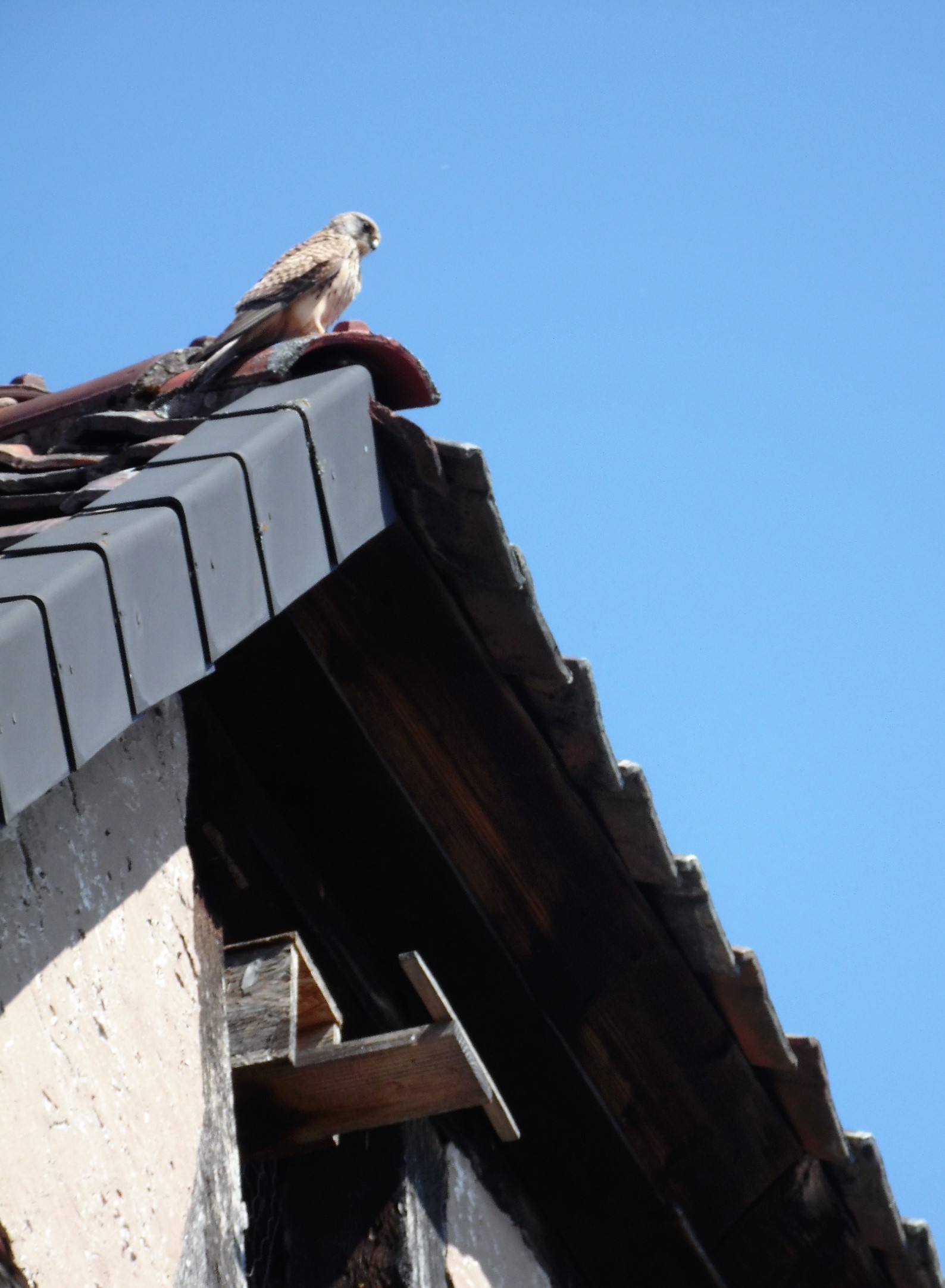 Schon im vergangenen Jahr hatten wir zwei Turmfalken in Unterrieden. Oft hörten wir sie und sahen ihrem Treiben über den Dächern zu. Im Winter waren sie verschwunden. Jetzt sind wieder zwei Tiere aufgetaucht und haben sich im Nistkasten unserer Scheune niedergelassen – was wir insgeheim auch gehofft haben.
