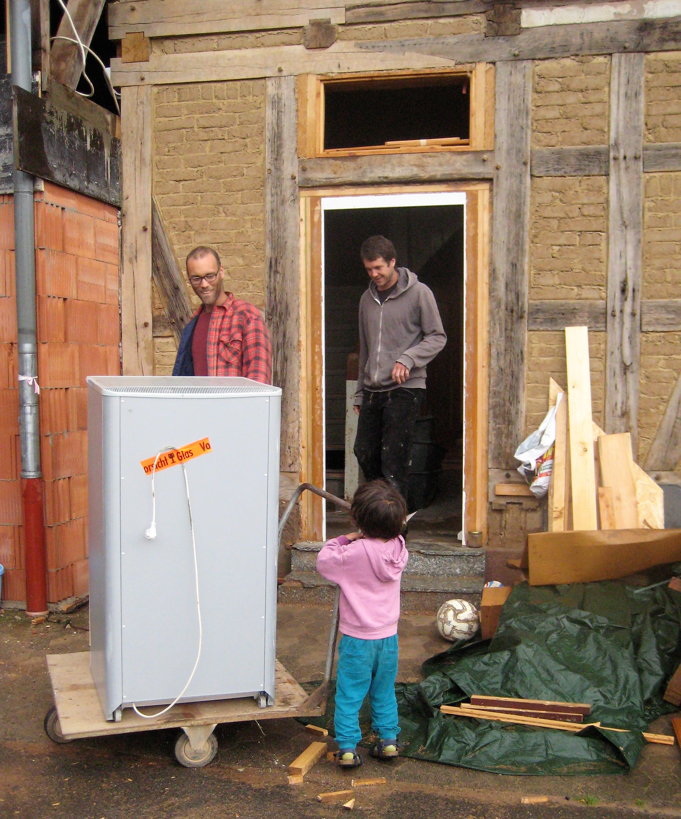 Lehm. Wir bauen mit Lehm – wie schon unsere Großeltern und deren Eltern. 40 Prozent der Weltbevölkerung lebt in Lehmhäusern. Wir restaurieren ein altes Fachwerkhaus, verwenden althergebrachte Techniken und lernen das Material zu schätzen. Auch manche Architekten sehen im Lehm einen Baustoff der Zukunft. Immerhin wird rund 40 Prozent des Kohlendioxid-Ausstoßes durch die Bauindustrie verursacht. Lehm könne die ökologische Bilanz wesentlich verbessern, erklärt die belgisch-malische Architektin Odile Vandermeeren in der Süddeutschen Zeitung. „Das Material wird lokal gewonnen und zerfällt wieder. Außerdem erspart es oft eine Klimaanlage.“ Darauf setzen auch wir. Im Sommer sollen die Lehmwände die Räume kühl halten, im Winter hilft das Material, die Wärme zu halten.