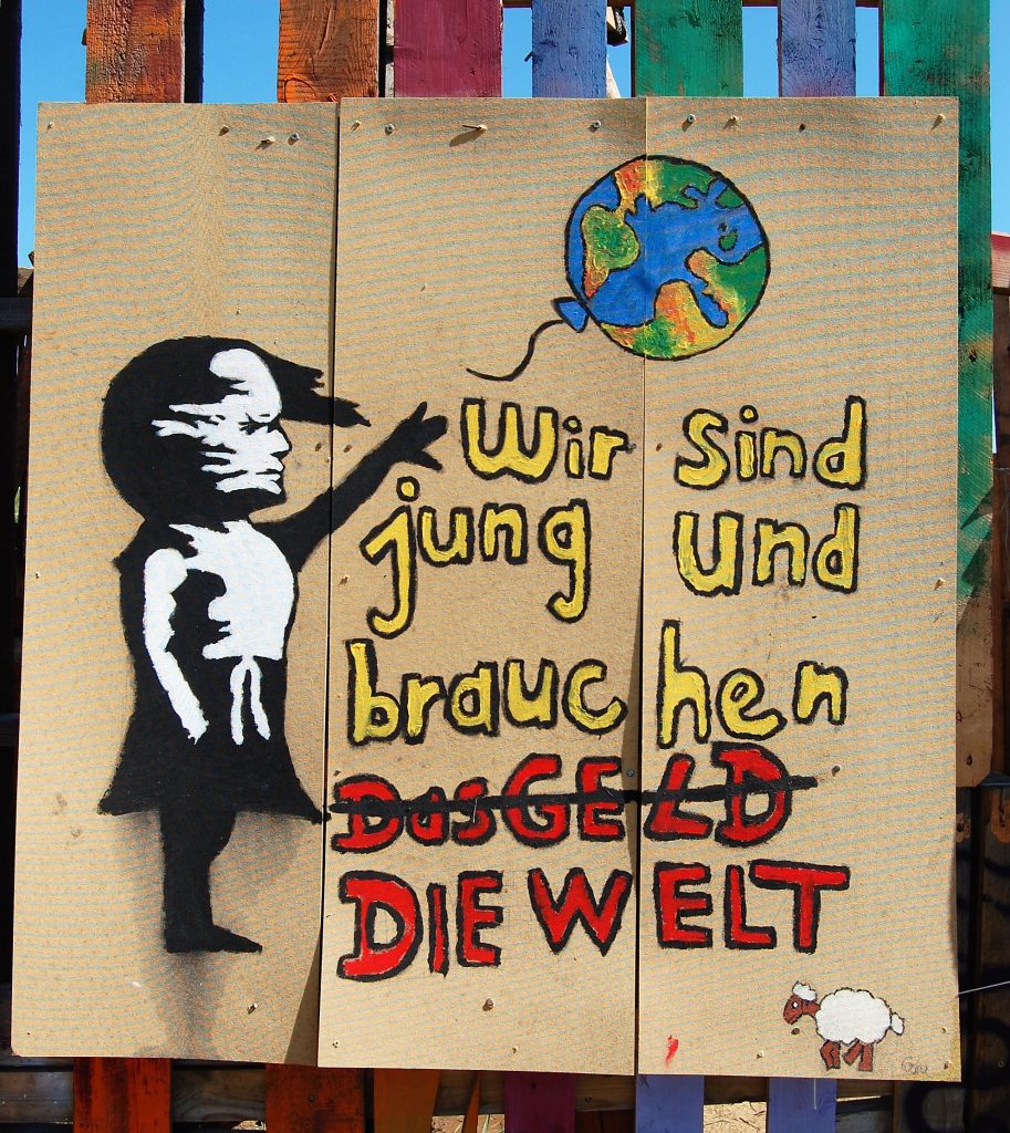 „Wieso muss ich überhaupt irgendeine Gegenleistung erbringen, wenn ich etwas essen will?“, fragt Regine. „Wieso kostet es mich Geld, wenn ich mich waschen oder zur Toilette gehen will? Wieso bezahle ich dafür, wenn mir jemand die Haare schneidet? Es wäre doch genauso gut vorstellbar, dass wir uns als Gemeinschaft zusammentun und gemeinsam dafür sorgen, dass unsere Bedürfnisse erfüllt werden, ohne Äquivalente tauschen.“